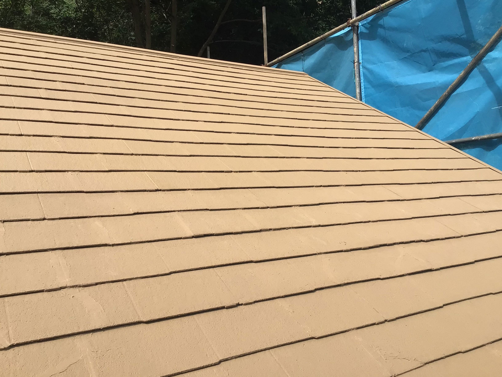 スピンオフで屋根、外壁をローラーで塗っていきます。今年も暑い日が続き、中々作業が捗らないようでしたが、
