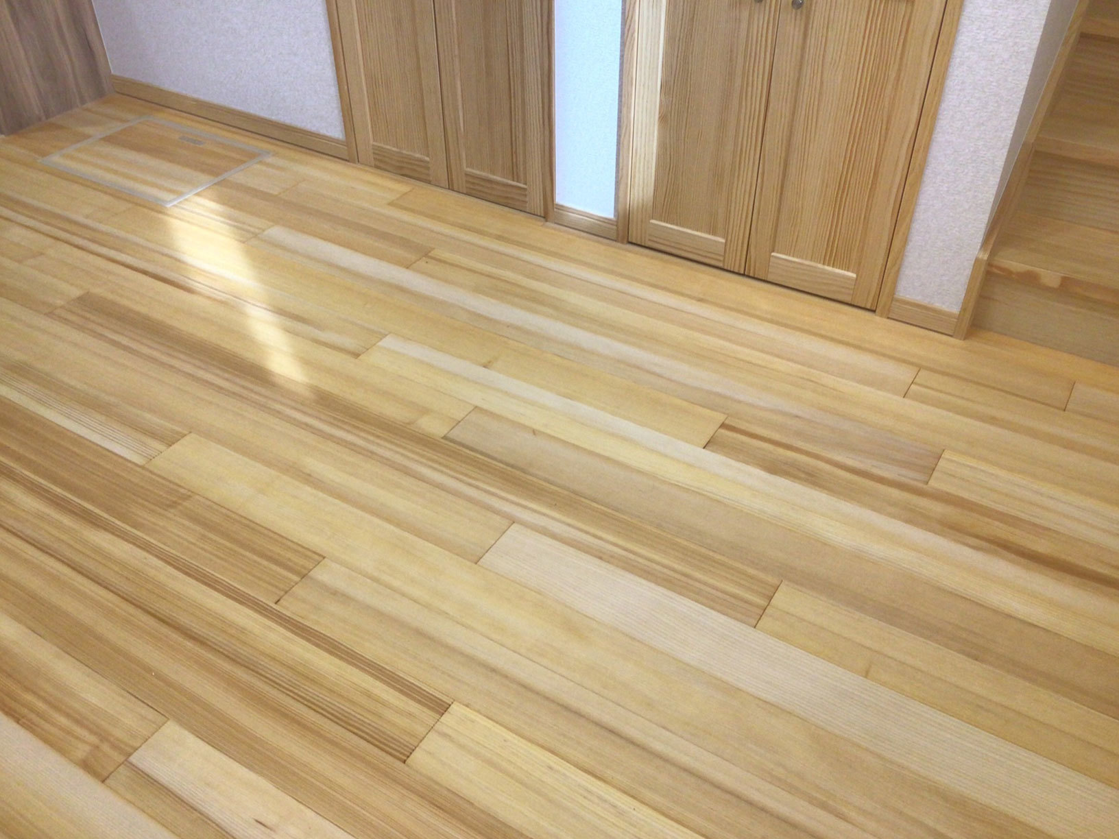 静岡県 工務店様・新築引き渡し 2025-11-10 今回は静岡県の工務店さんでお施主様立ち合いで引き渡しです。 旦那様も息子さんも樅をすごく気に入っていただけました。現在の住まいは床がフローリングでとても冷たいけど樅の床は冷たくないと早速実感していただけました。夏は裸足で過ごす事が多いそうで樅ならベタつきも無くサラサラするので夏も快適に過ごせると思います。手入れの仕方など軽くモミカフェさせていただきました。新築祝いの樅のゴミ箱は自慢するそうです! ありがとうございました。