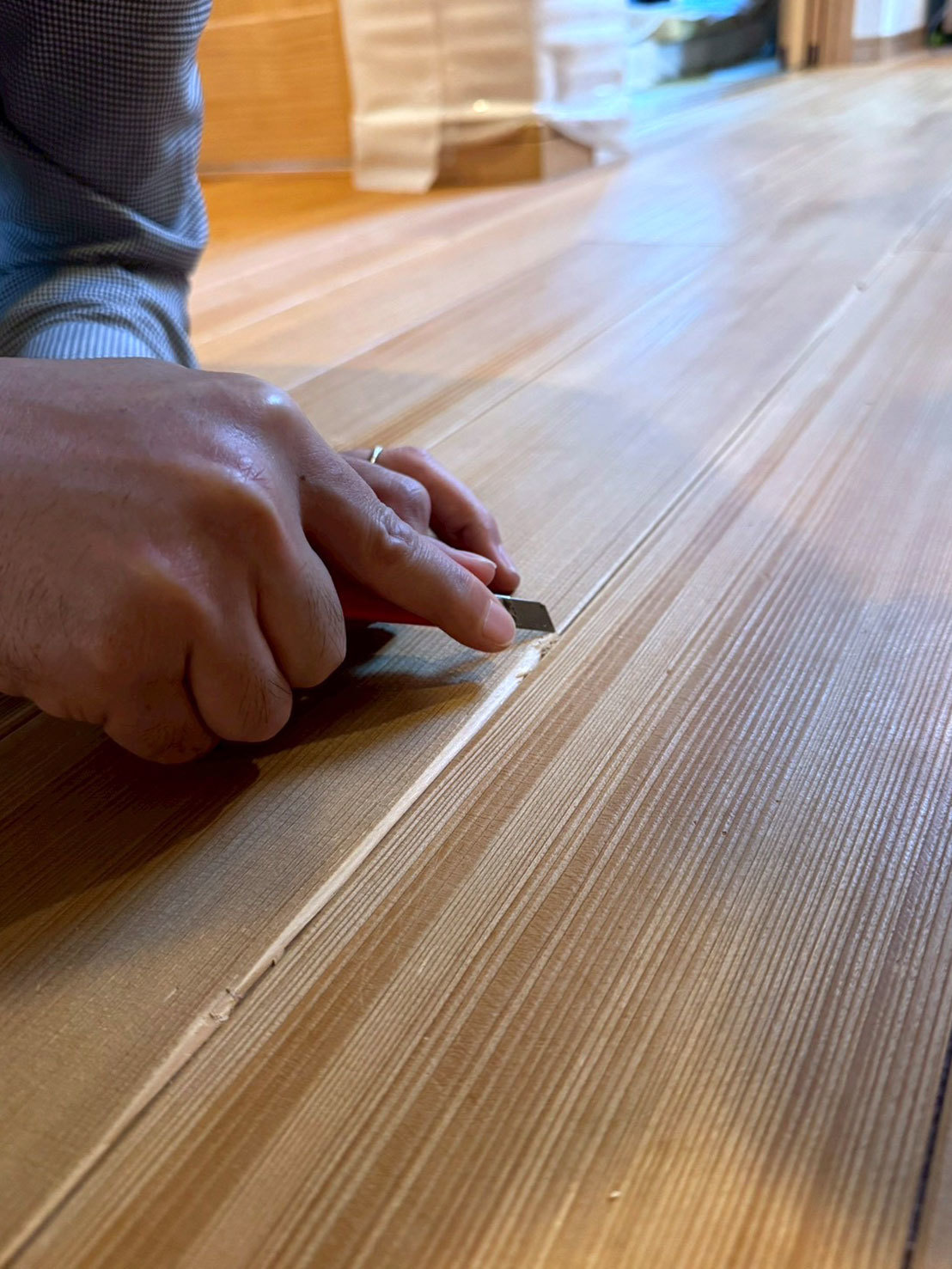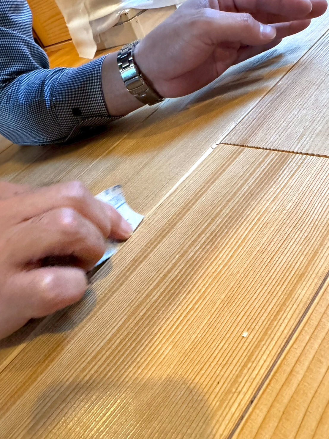 床のささくれがあり補修させていただきました。最近OB様邸を周ってますが、